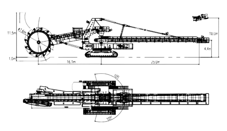(1)輪斗挖掘機的連續(xù)生產(chǎn)率高,開采量大服務(wù)年限長可獲得良好的經(jīng)濟效益。